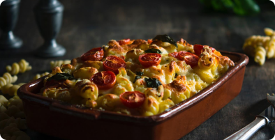 Onions, Red Pepper, Chicken, Pepperoni, Bacon & Cheddar Cheese