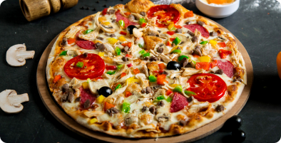 Onion, Olives, Mushrooms, Green Pepper, Canadian Ham, Pepperoni & Ground Beef